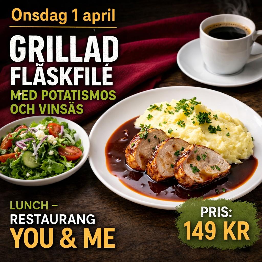 På Restaurang You & Me erbjuder vi en varm och inbjudande miljö där varje måltid är noga tillagad för att skapa en unik smakupplevelse. Vår passion för kvalitet och genuint sällskap gör oss till det självklara valet för din nästa middag.